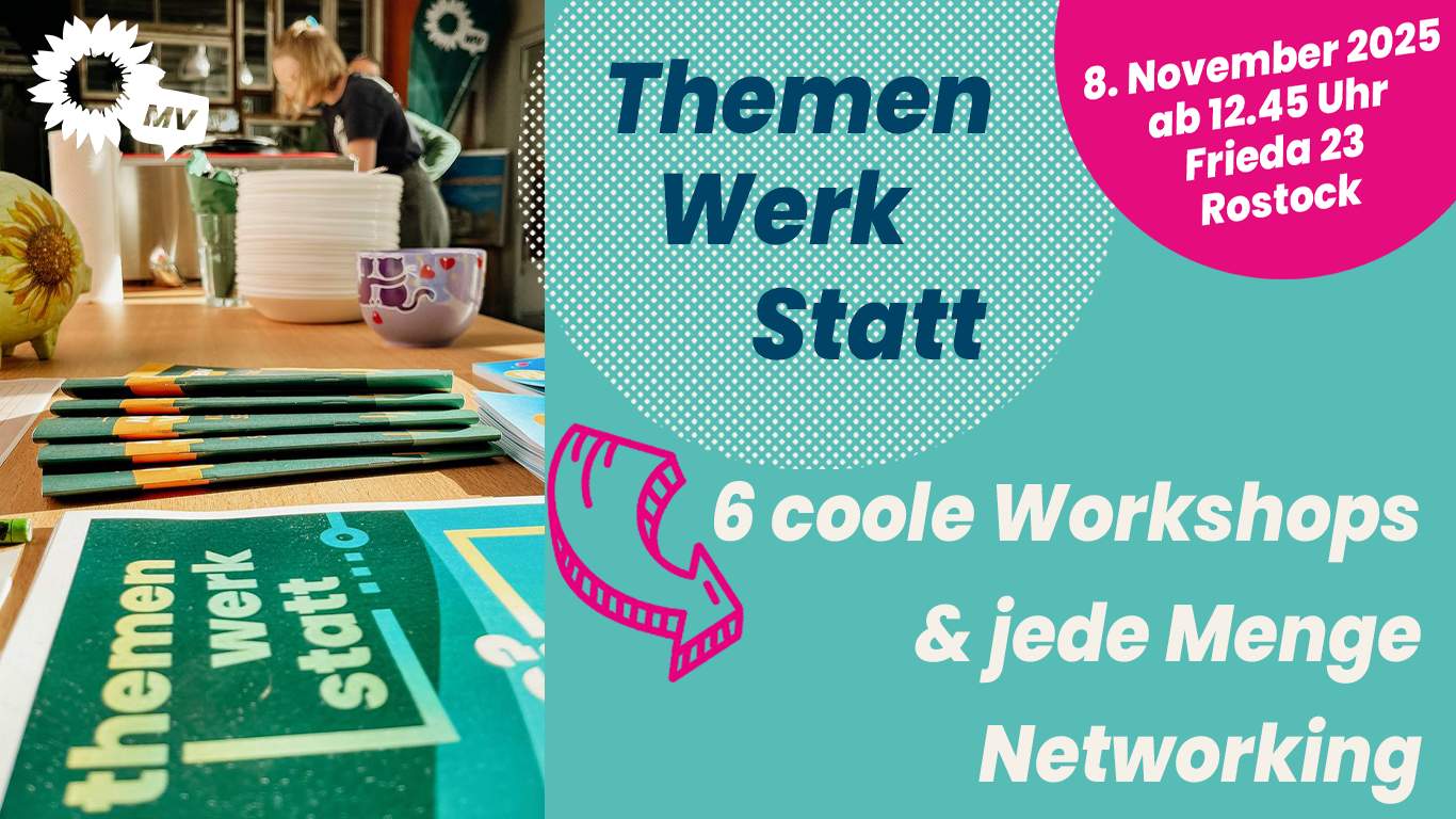 Hier gibt es alle wichtigen Infos zu Ablauf und Anmeldung: BÜNDNIS 90/DIE GRÜNEN MV – Themenwerkstatt 2025